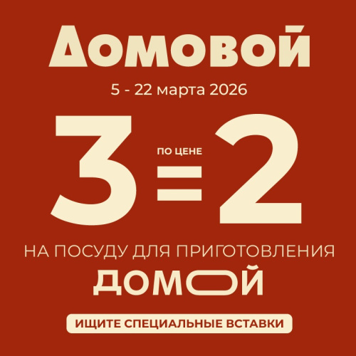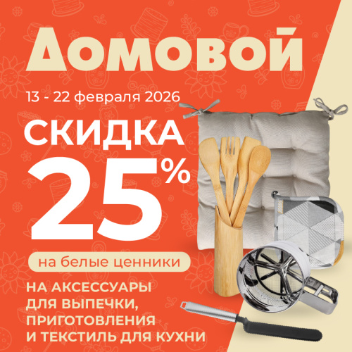Скидка действует по 20.03.2026 г. на весь текстиль с белыми ценниками по купону с предъявлением дисконтной карты «Домовой».